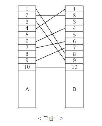 A 값의 순서로 B 값을 수열로 만들어보면 {8, 2, 9, 1, 4, 6, 7, 10} 이다. 이 수열의 최장증가수열의 개수를 구해서, 전체 전깃줄 개수에서 빼면 답을 구할 수 있다.입력이 정렬되어 들어오지 않기 때문에 A값 기준으로 정렬한 후, 이분 탐색 이용하여 LIS의 개수를 구한다.
