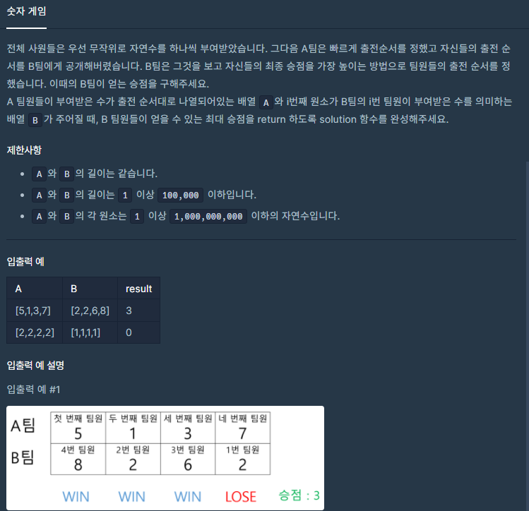 코딩테스트 연습 - 숫자 게임