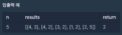 선수의 수 n, 경기 결과를 담은 2차원 배열 results가 매개변수로 주어질 때 정확하게 순위를 매길 수 있는 선수의 수를 return 하도록 solution 함수를 작성해주세요.