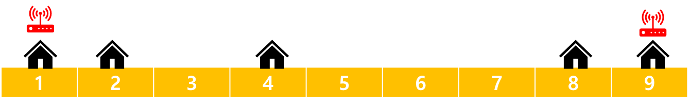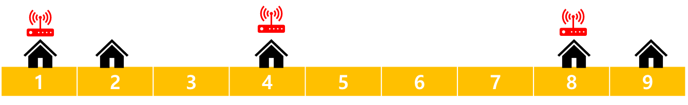 가장 인접한 두 공유기 사이의 거리를 8로 가정한다면?