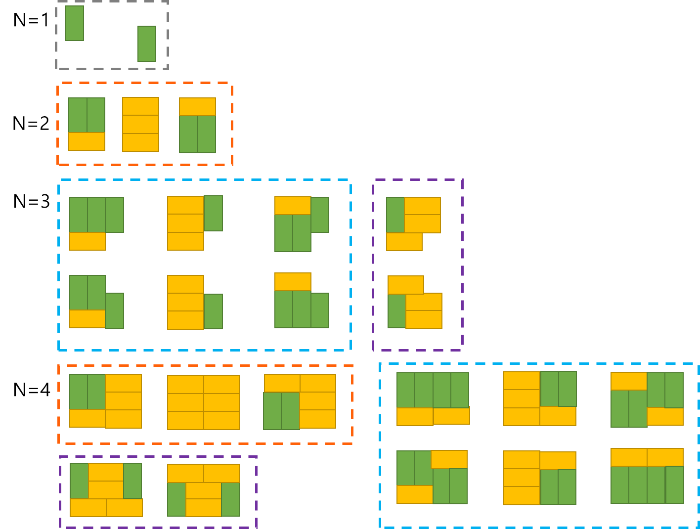 - N이 2일 때의 패턴에다가 세로 타일을 위 아래로 하나씩 붙임