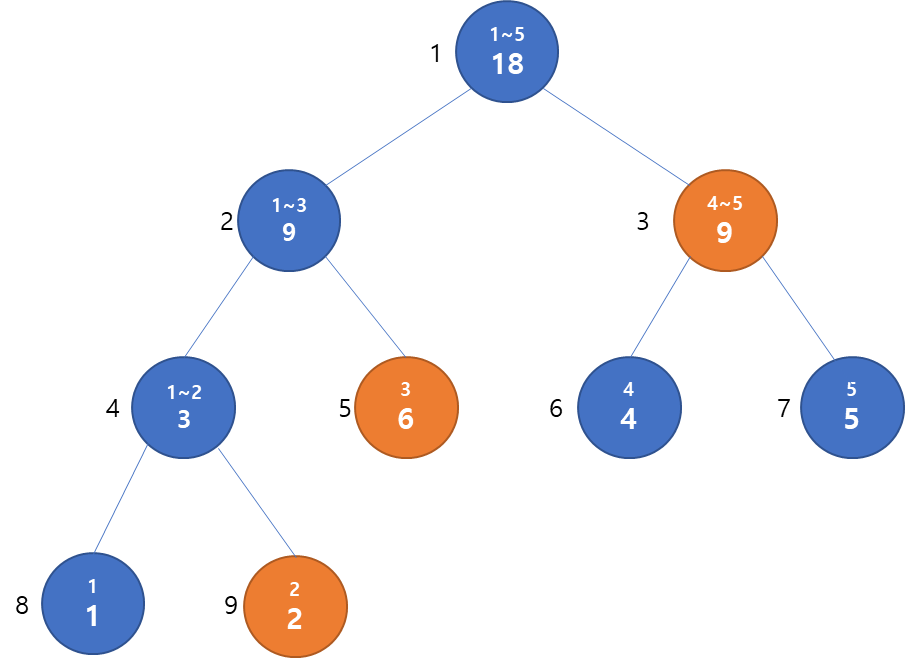 2~5 구간에 포함되는 Tree Node의 값을 모두 더해주면 된다.