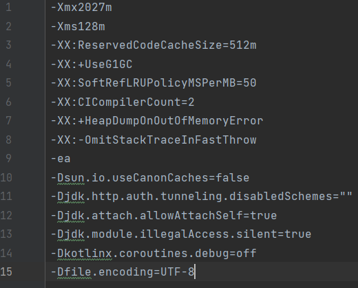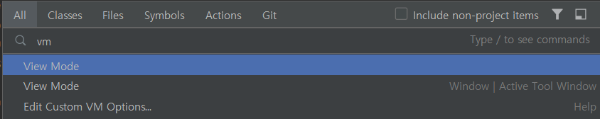 - shift를 두번 눌러서 'Edit Custom VM Options...'을 Open한다.