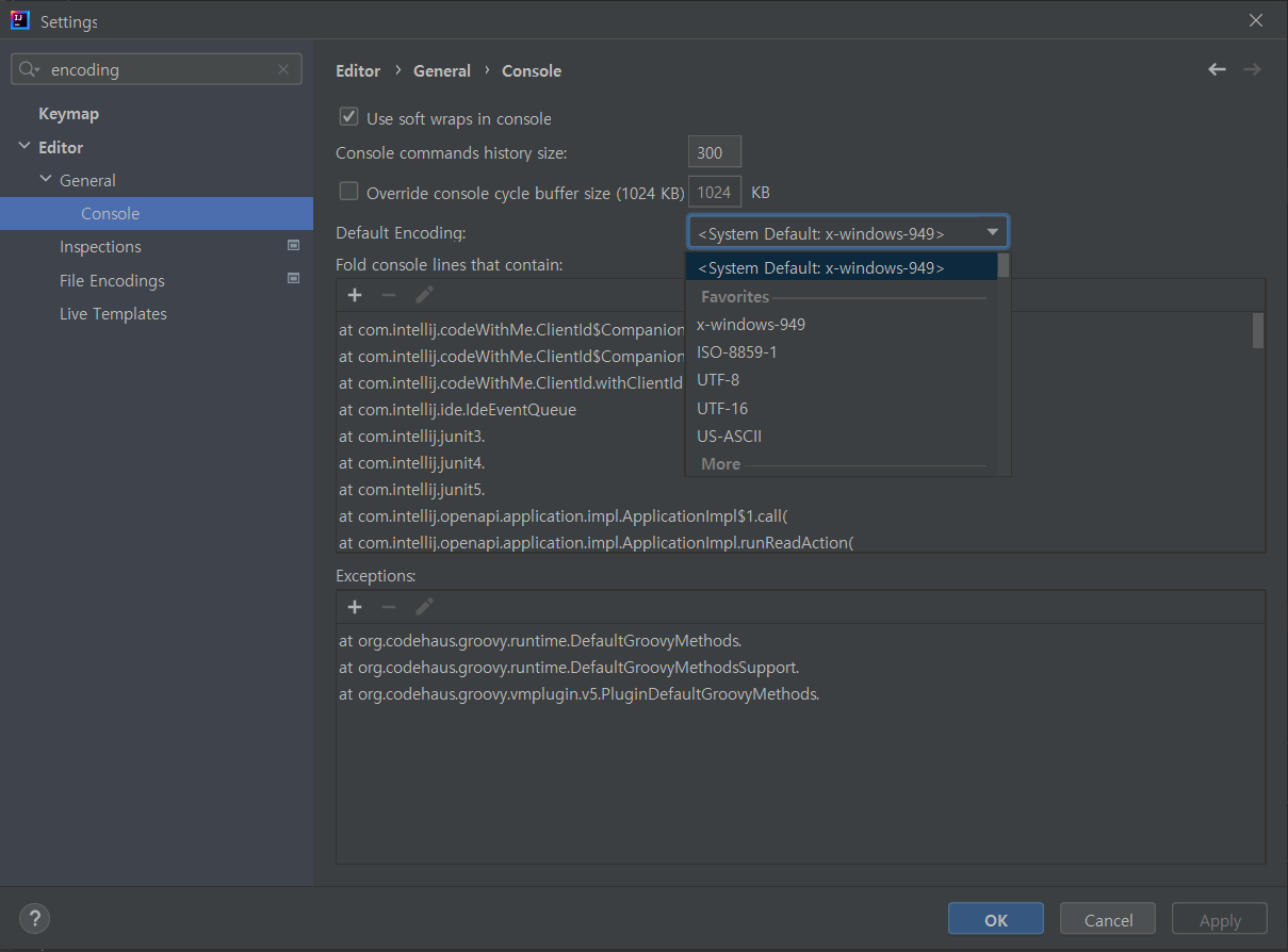 - -Dfile.encoding=UTF-8 추가 후 저장한다.